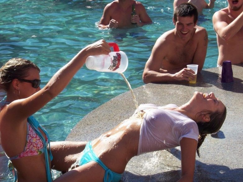 Симпатичные девушки в мокрой одежде