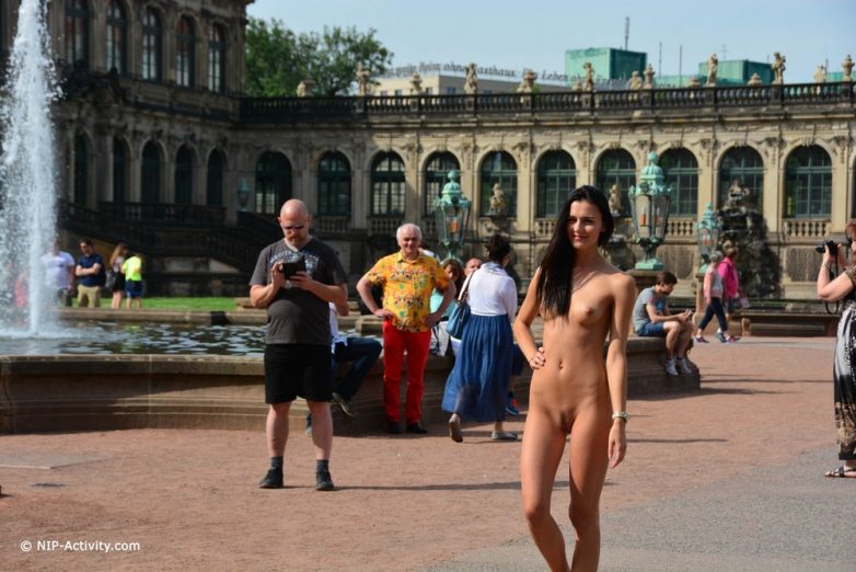 Обнаженная красотка в центре Дрездена