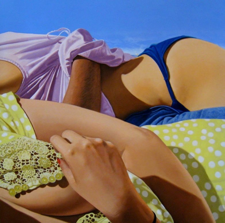 Вечера в конце лета — это жаркая послеполуденная истома, когда девушки располагаются на траве позагорать, в воздухе витают ароматы влажной земли, жизнь бьет ключом страсти и кажется, что лето никогда не закончится. Эти чувства, мысли и образы отражены с поразительной точностью и фотографичностью в картинах современного французского художника Жерара Шлоссера.