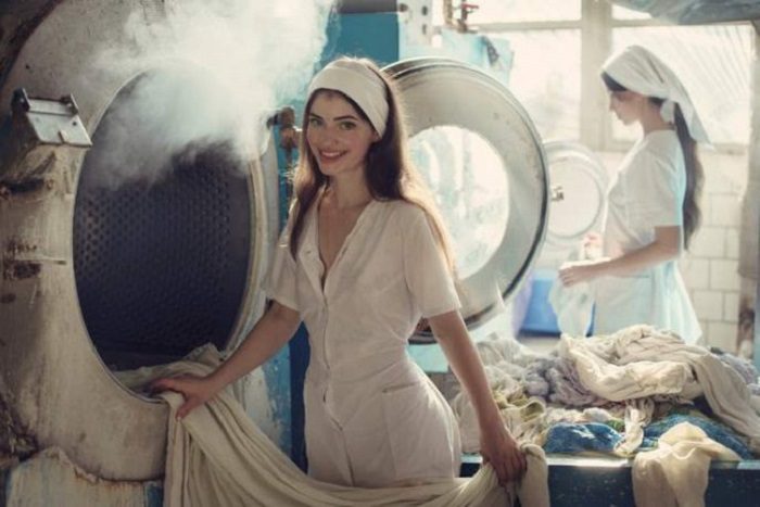 в тазу оцинкованном особенно непринужденно выглядит дама