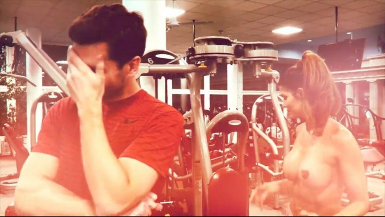 Голая модель в спортзале