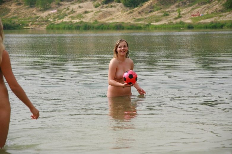 Пляжные развлечения голой молодежи