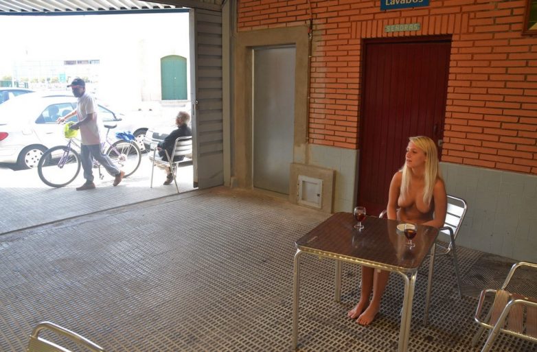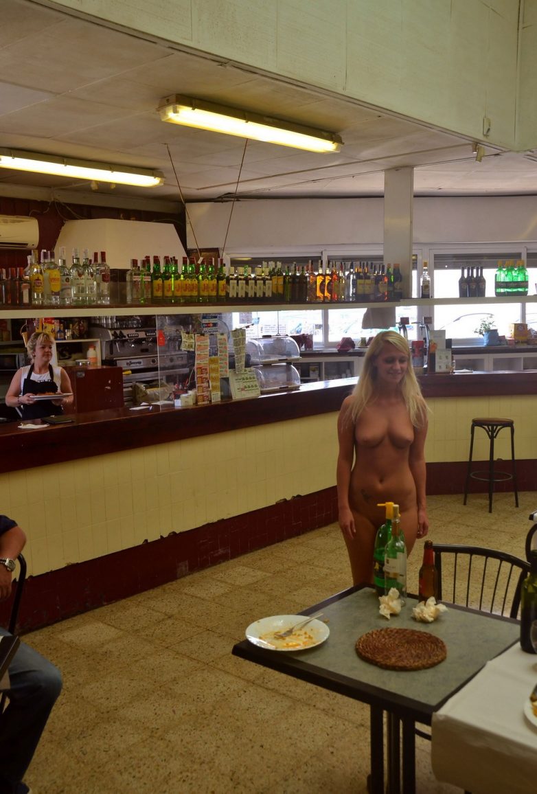 Голая блондинка в кафе на радость посетителям!