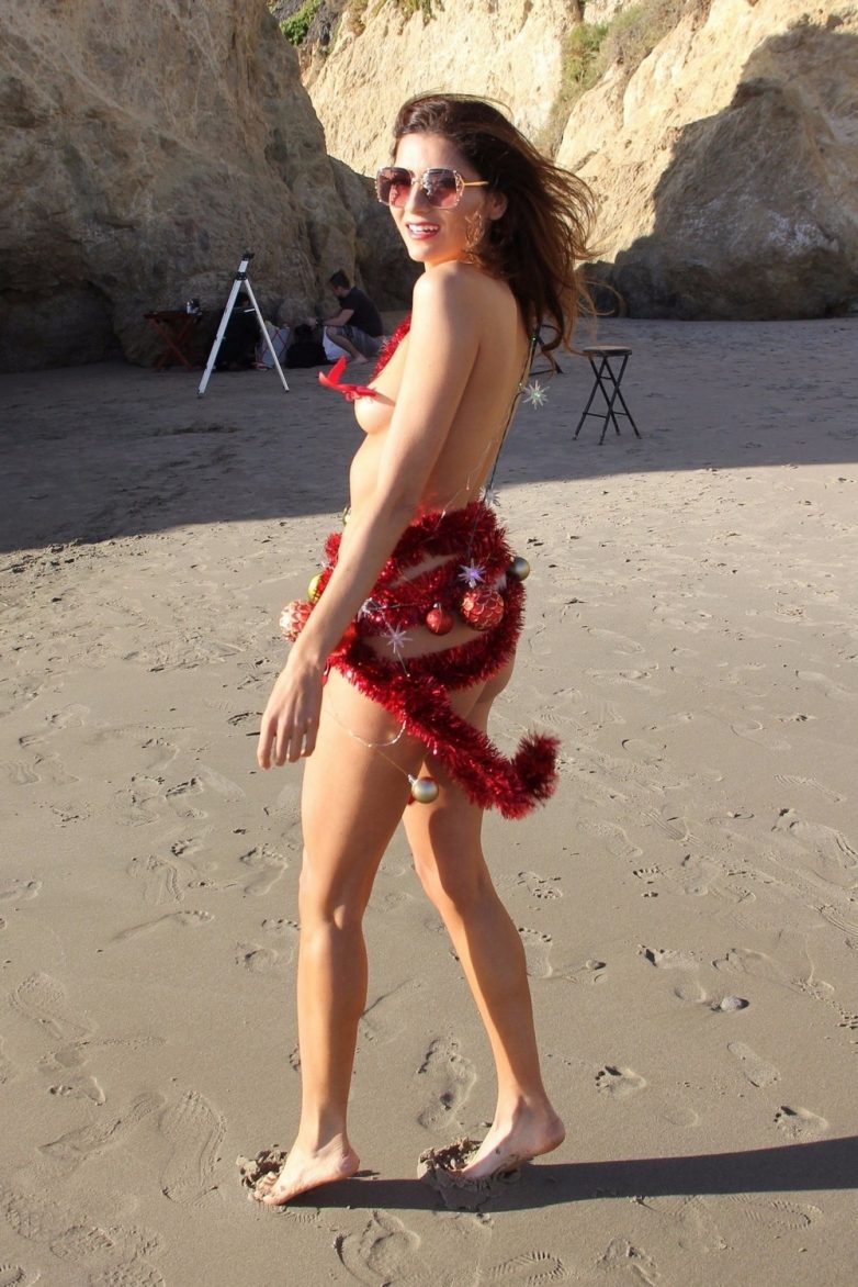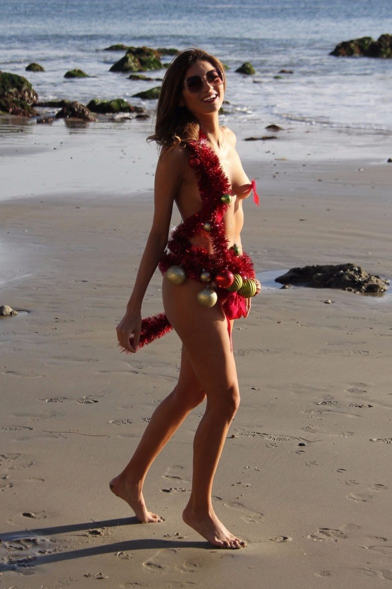 36-летняя американская актриса Бланка Бланко (Blanca Blanco) в откровенном рождественском наряде на пляже в Малибу.