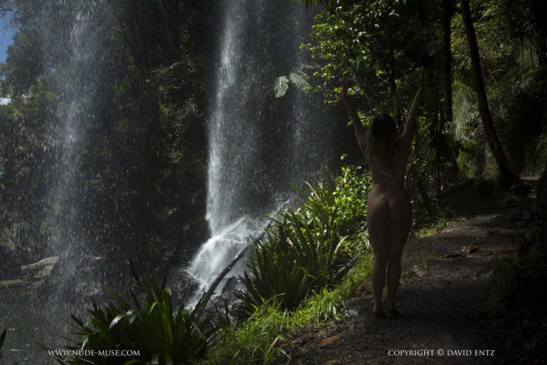 Водопад красиво выглядит, а вот кто там в темноте маячит не понятно. Вроде бабёночка…