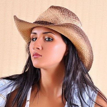 Жгучая брюнетка в ковбойской шляпе с гитарой