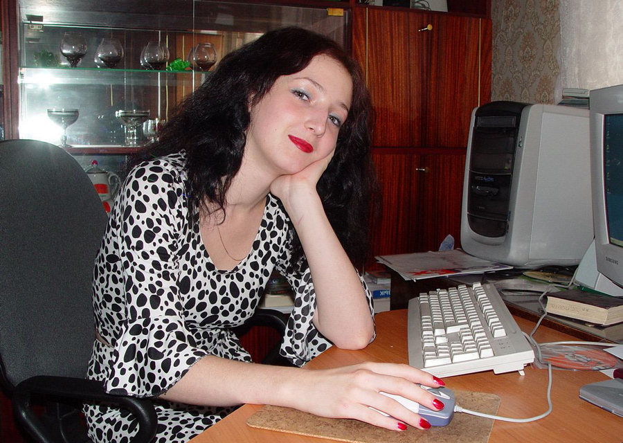 Симпатичная мамзель разделась перед компьютером