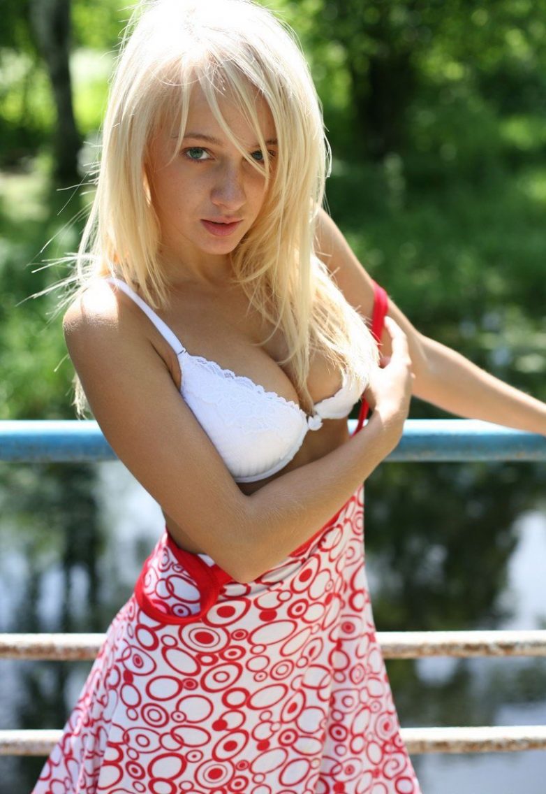 Симпатичной блондинке взбрело в голову раздеться на мосту