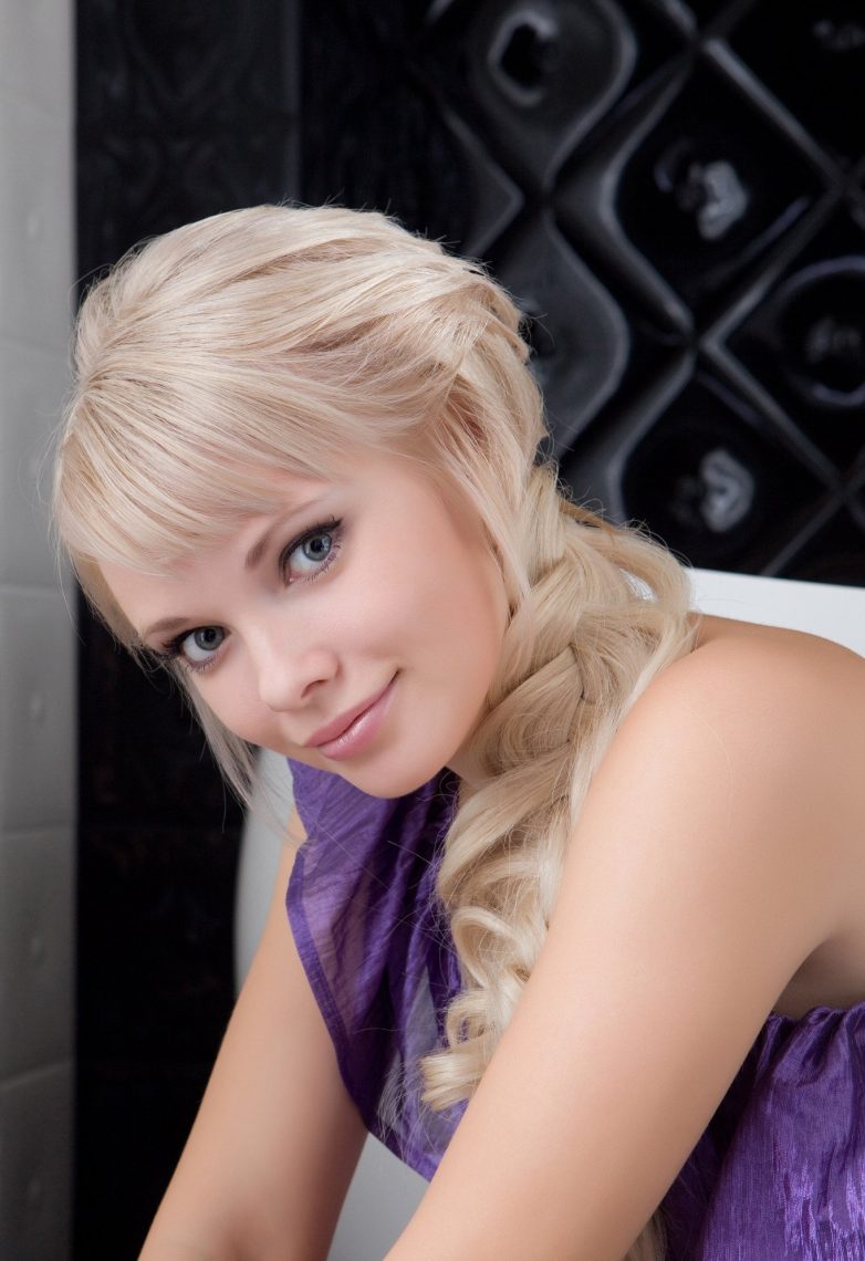 Улыбчивая блондинка с мудрёной косой