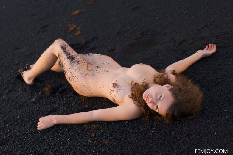 Голая-голая женщина на чёрном-чёрном пляже