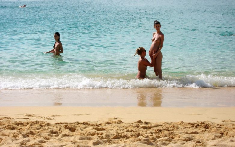 Голенькие барышни отдыхают на пляже