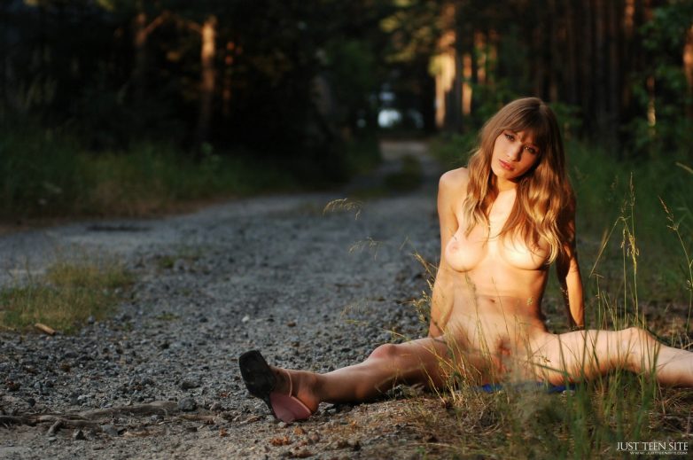 Оторва в джинсах на лесной дороге