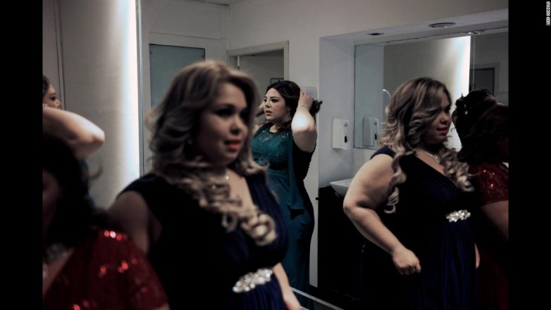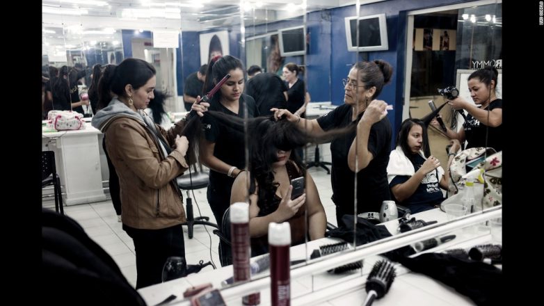 Микаэле Арче укладывают волосы за несколько часов до представления.