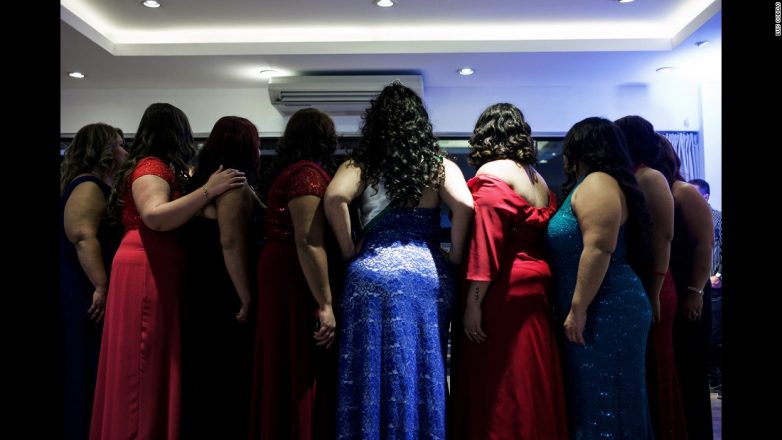 Ракель Хименес обнимает конкурсантку перед началом конкурса «Мисс упитанность». Ракель была победителем в 2015 году. Конкурс был создан для борьбы с дискриминацией полных людей и укрепления здоровья участниц.Но главный смысл мероприятия не связан ни с модой, ни с красотой. Тут дело скорее в реабилитации, восстановлении. В течение трех месяцев перед модным показом, который является частью конкурса, конкурсанток, которые весят от 90 до 117 килограммов, наблюдают диетологи, имидж-консультанты и психологи. Им прививают привычку правильно питаться и ощущать себя более комфортно в своем теле.