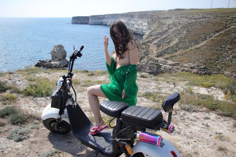 Вика катается на скутере по побережью Крыма