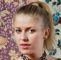 Распоясавшаяся блондинка в лиловом корсете