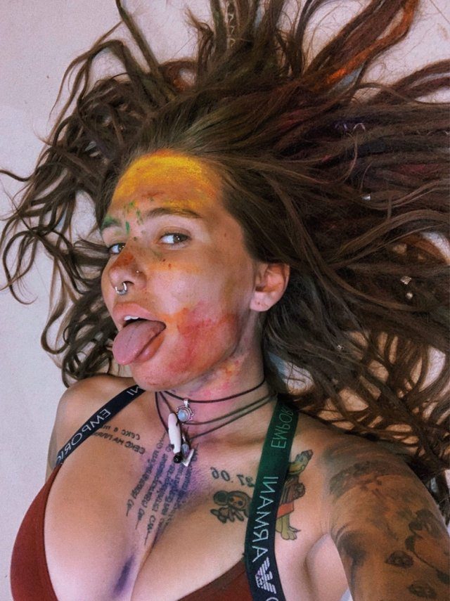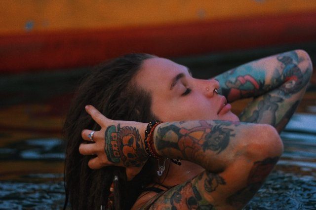 У нас в деревне молодым и горячим бычкам кольцо в нос вдевали. А татухи… Представляю её в 50 лет. УМОРА!!!