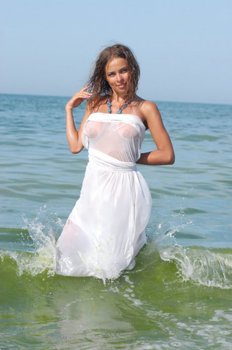 Мокрая красотища наслаждается морским отдыхом