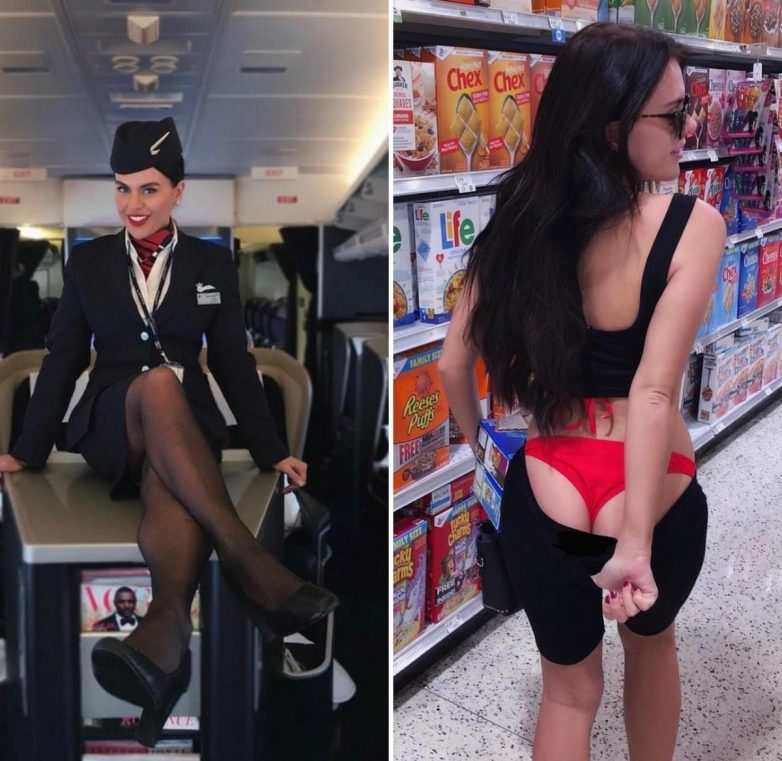 Обворожительные стюардессы в форме и без нее