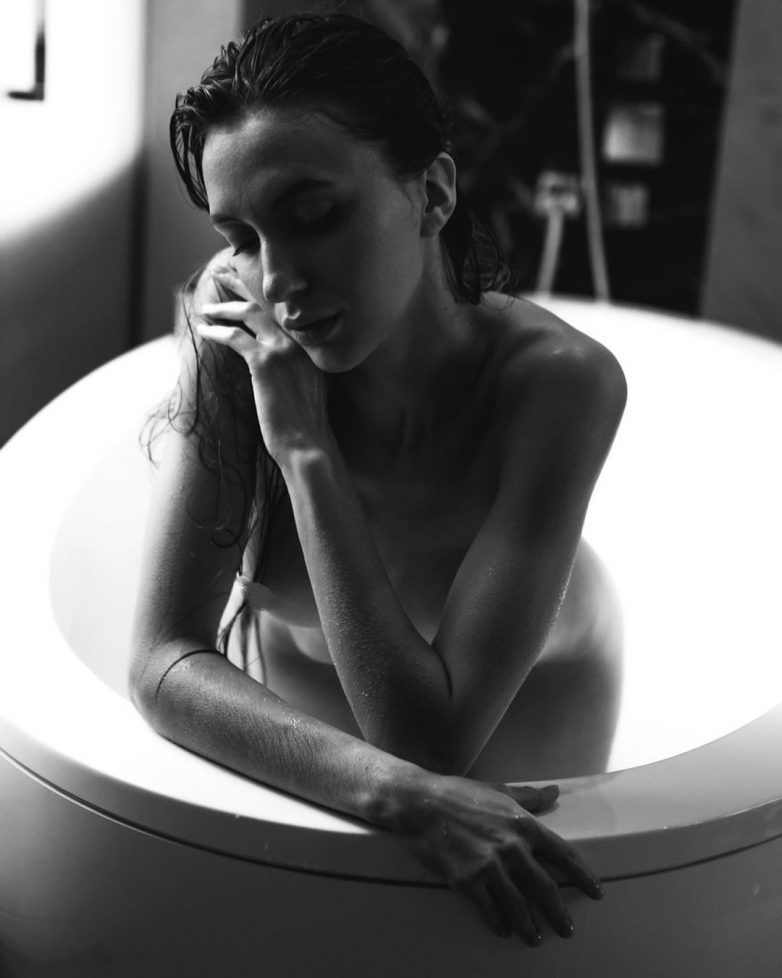 Катя поделилась чёрно-белыми фото, на которых она позировала в ванне. На них девушка предстала совершенно обнажённой. Отсутствие макияжа и укладки подчёркивало естественность её образа. На одном фото Катя лежала в воде, а на другом — опиралась руками на бортик ванны. Обе позы были довольно откровенны, поэтому фотографу пришлось прикрыть всё самое неприличное в фоторедакторе. Поклонники были поражены таким видом своего кумира, о чём и поделились в комментариях.