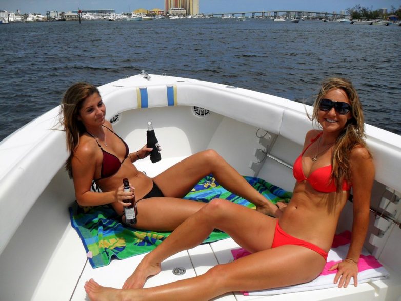 Девушки в бикини наслаждаются летним отпуском на лодках