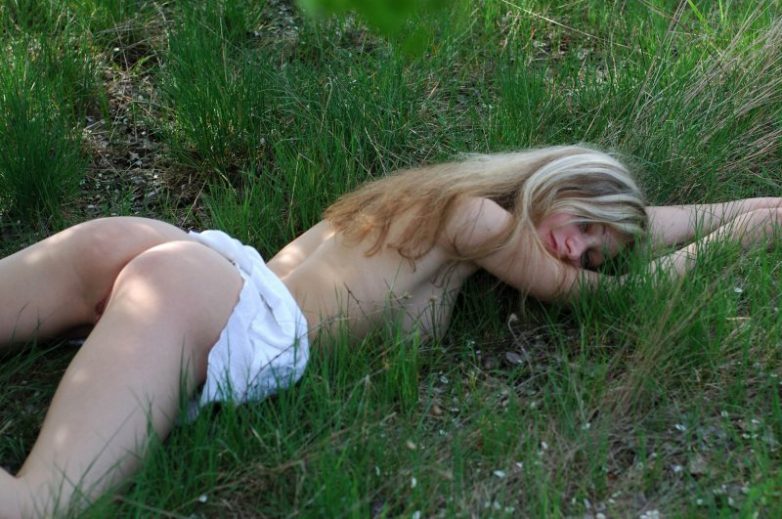 Симпатичная девушка сделала несколько фото на природе, а потом отправилась на речку.