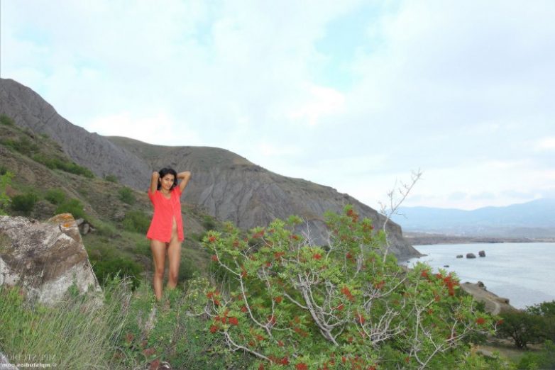 Карамельная брюнетка в скалах