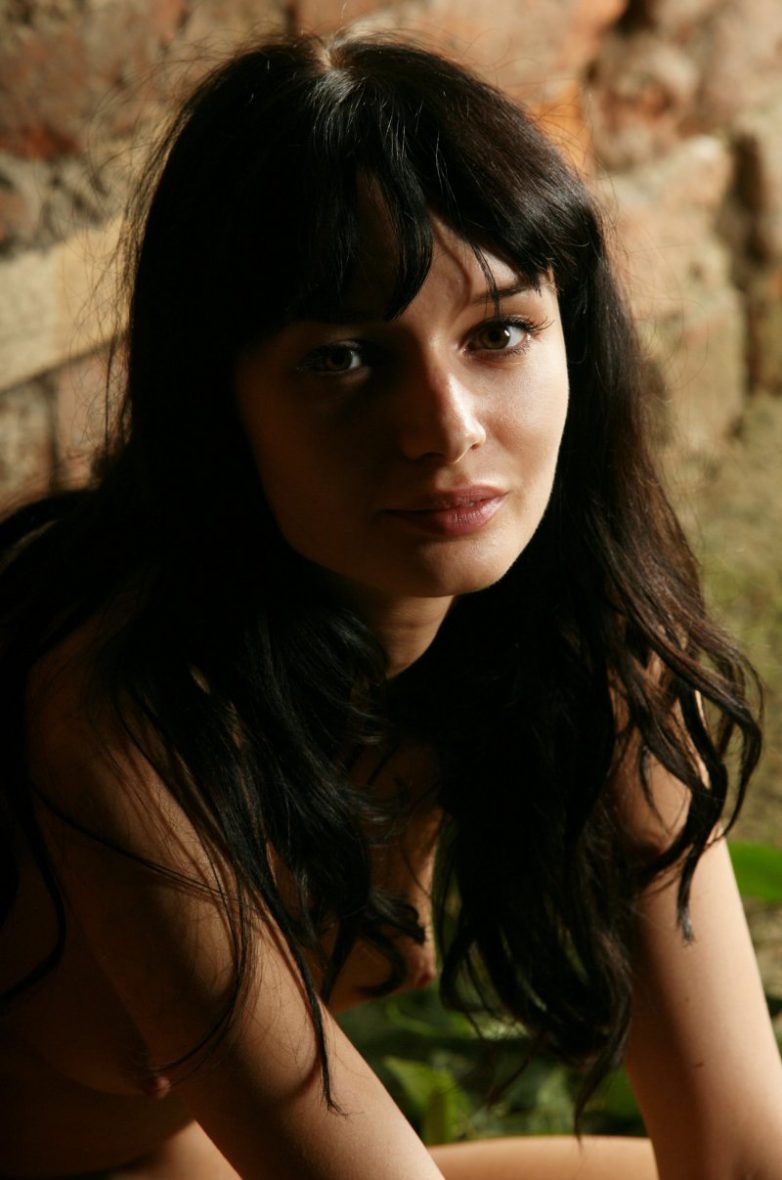 Красивая брюнетка в каменном лабиринте