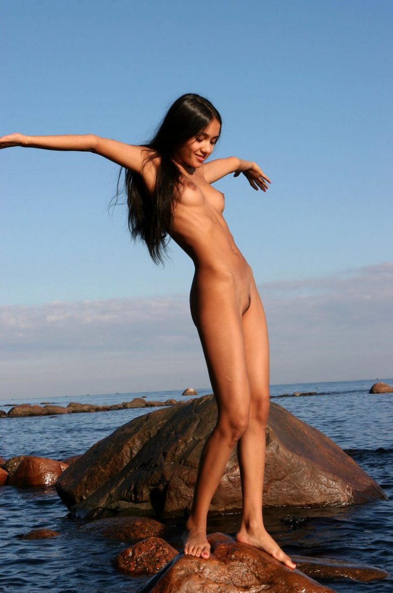Карамельная брюнетка отдыхает на море