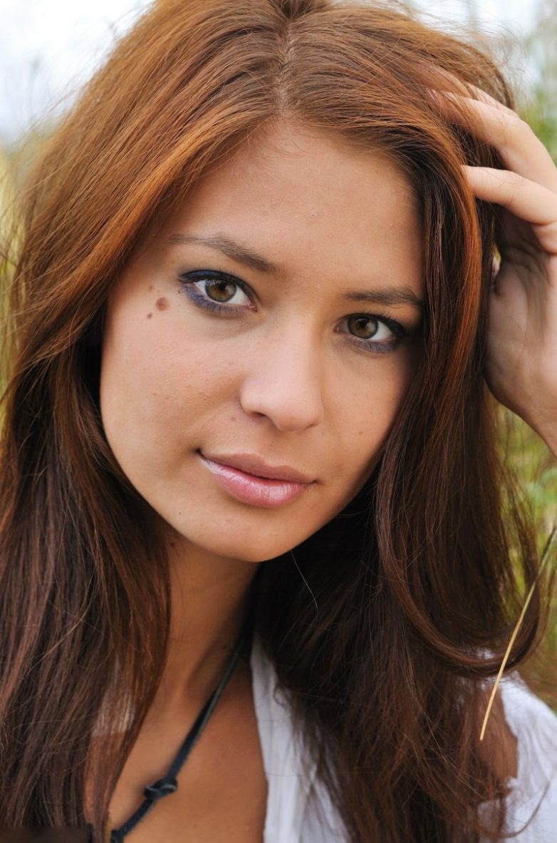 Соблазнительная шатенка нашла укромное местечко в высокой траве