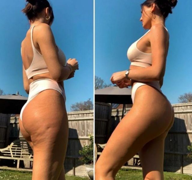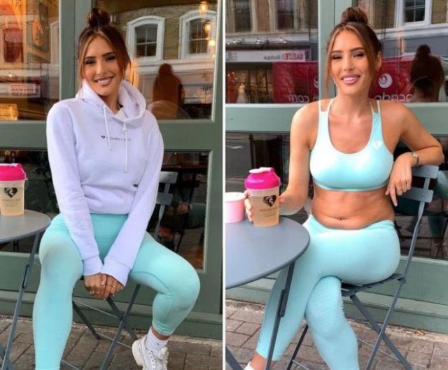 Девушка-блогер по имени Джорджи Кларк решила всем показать, что фотографии в социальных сетях очень часто отличаются от того, что можно увидеть в реальной жизни. Судя по всему, ее цель — напомнить, что для хороших снимков девушки обрабатывают готовые фотографии, выставляют свет, занимают более выгодные позы и так далее. И разница, уж поверьте, действительно очевидна — оцените сами.