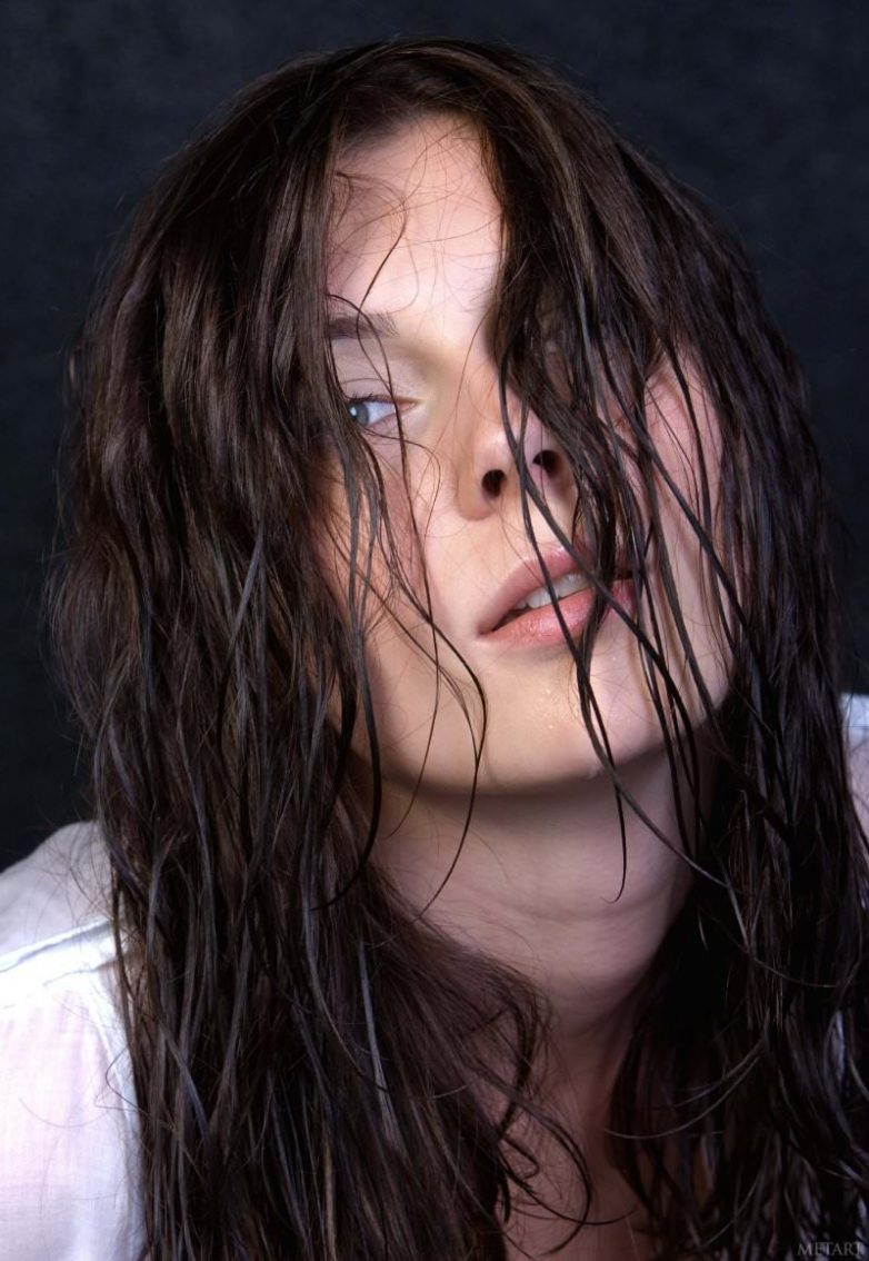 Мокрая фотосессия в белой рубашке