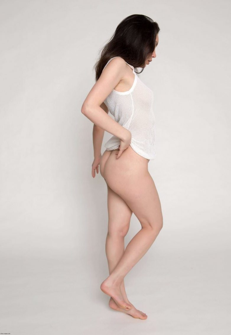 Брюнетка в экстремально короткой маечке