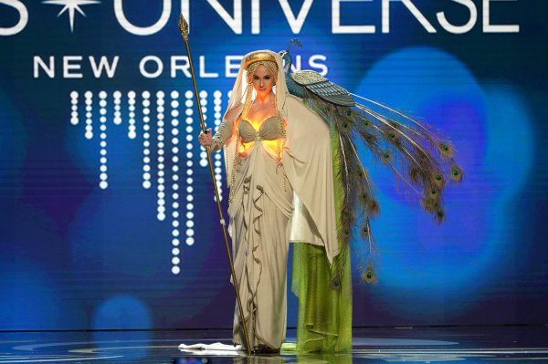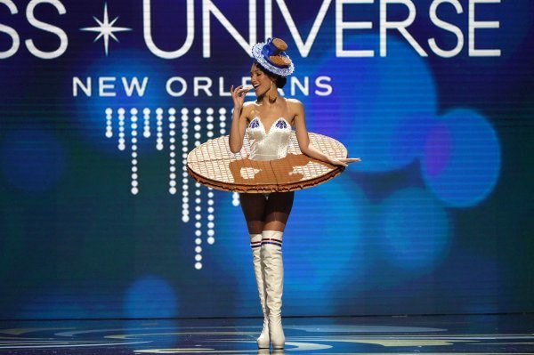 Наряд участницы из США продолжают обсуждать в интернете уже несколько дней, ведь он вызвал немало споров. Девушка решила надеть тяжёлый костюм, который символизирует роль Америки в покорении космоса. Однако столь глубокая идея отразилась на весе костюма (на секундочку, он весил целых 15 килограммов). Конкурсантка еле-еле передвигалась в нём по сцене, что со стороны выглядело довольно эпично и забавно. Однако затраченные усилия в результате полностью окупились, ведь Р’бонни Габриэль смогла одержать победу в конкурсе.