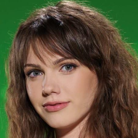 Очаровательная шатенка на зелёном фоне