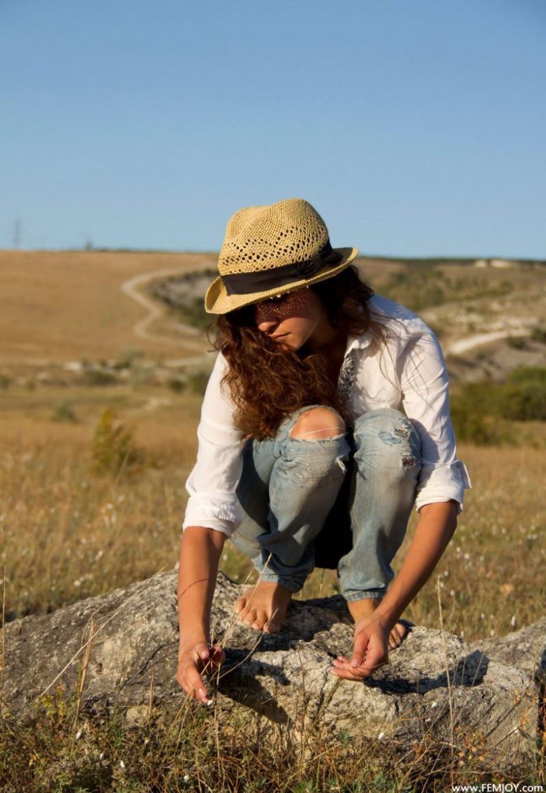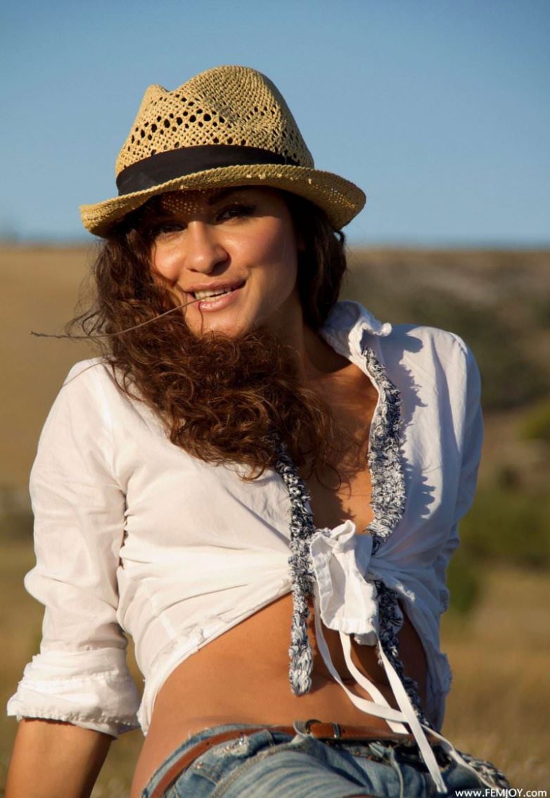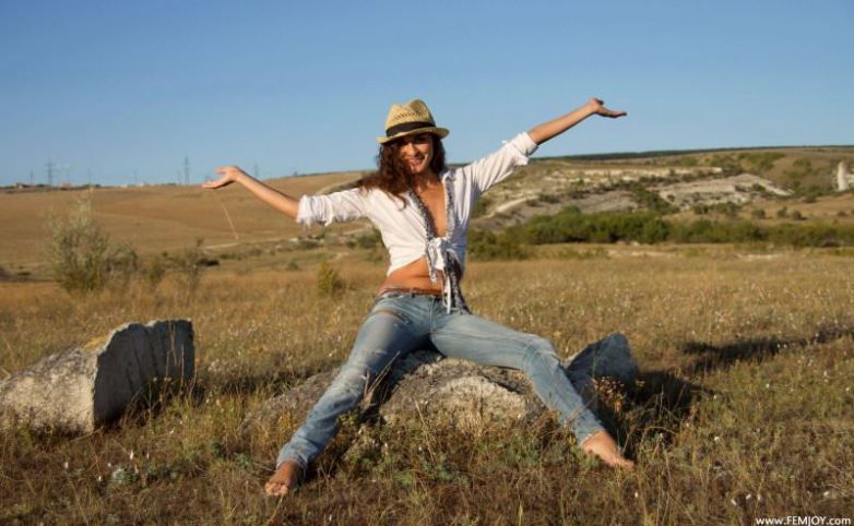 Смуглая красотка в драных джинсах