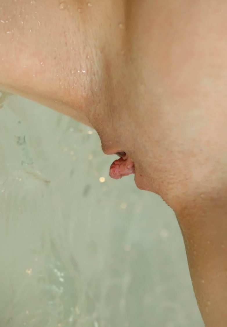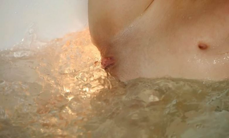 Водные процедуры зеленоглазой блондинки