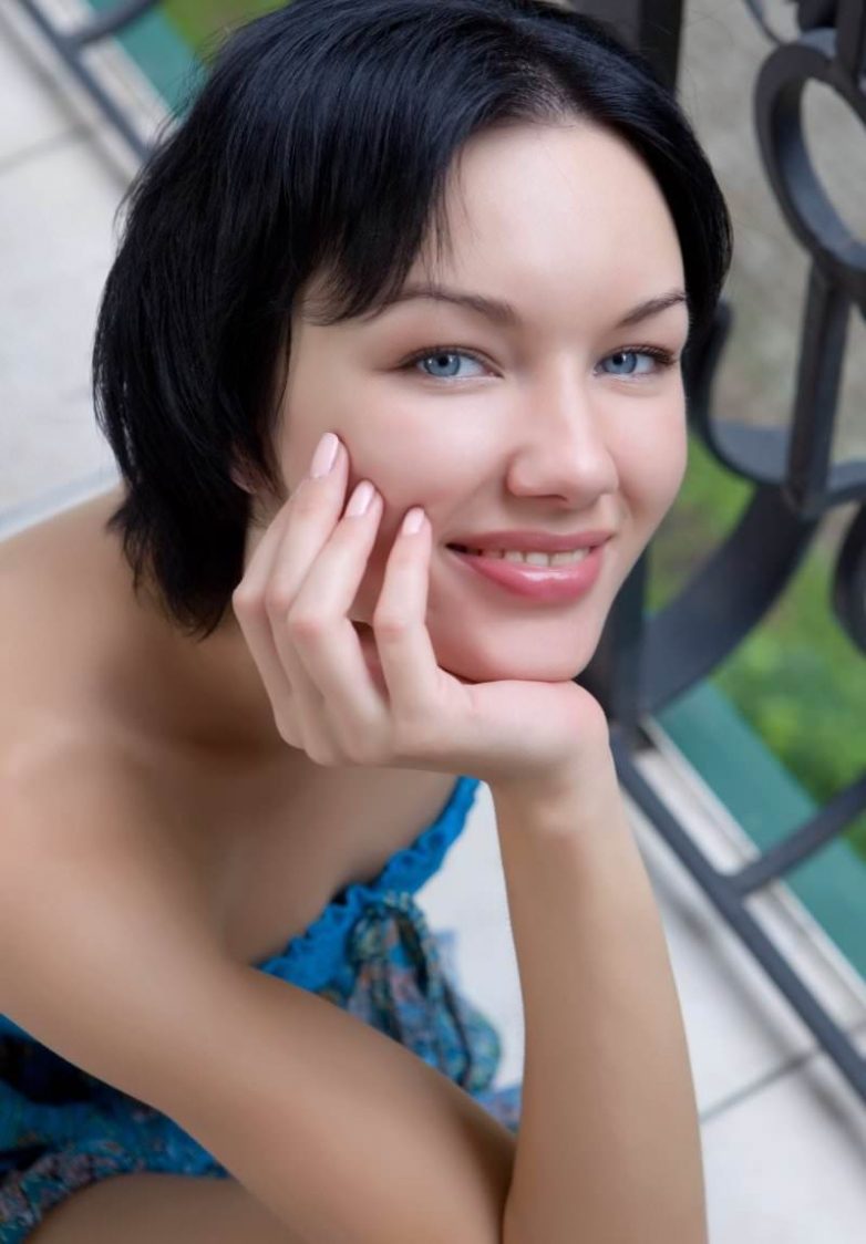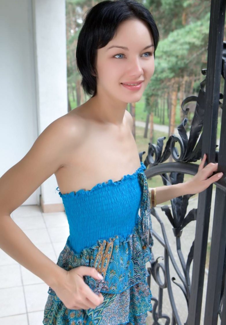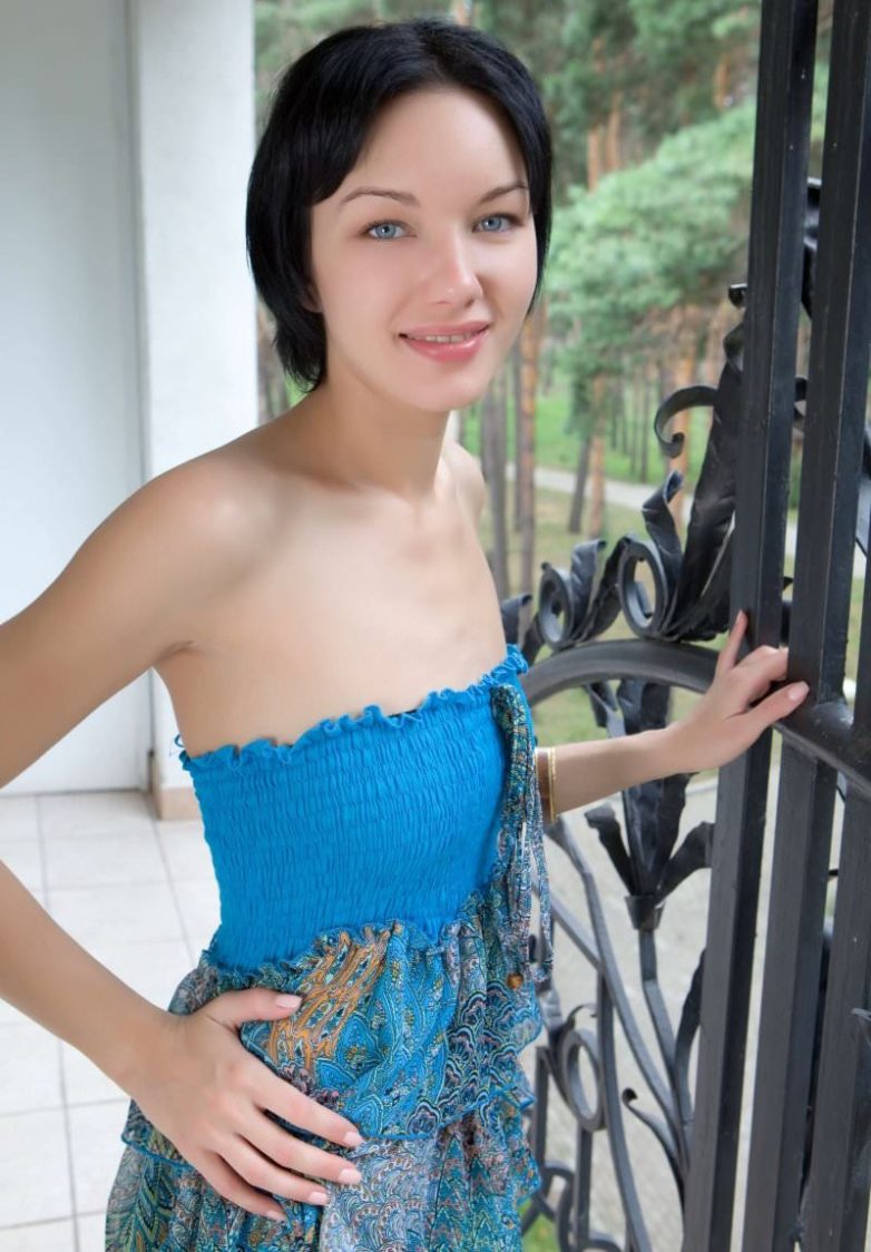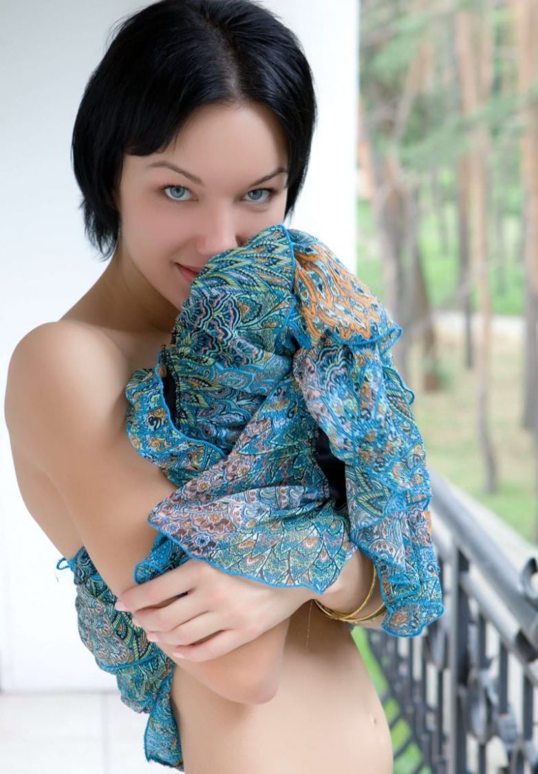 Брюнетка позирует в нескромных позах.