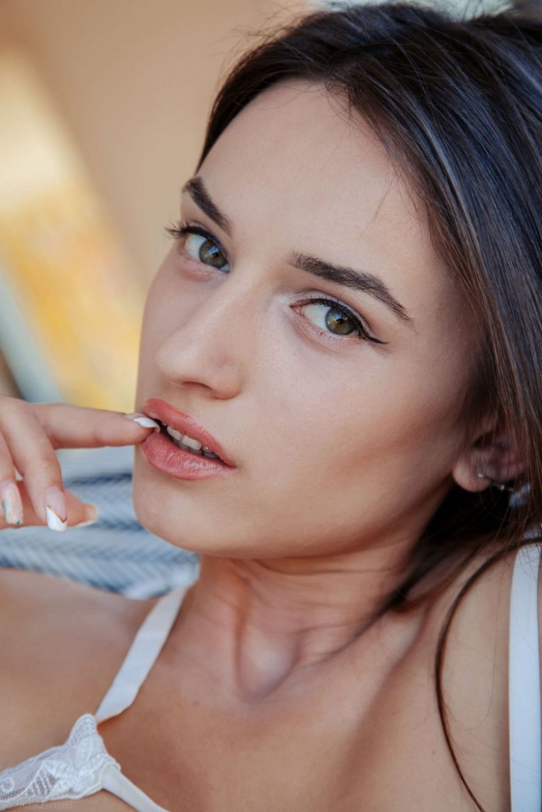Красивая девушка позирует в очень необычном белье.