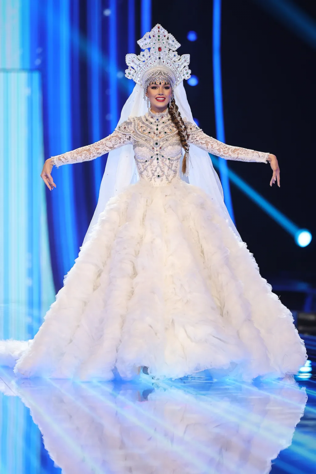 Маргарита Голубева представила прекрасный костюм, разработанный по мотивам картины Михаила Врубеля «Царевна-Лебедь». Создателем этого нежнейшего платья стала дизайнер из Санкт-Петербурга Ольга Малярова.
