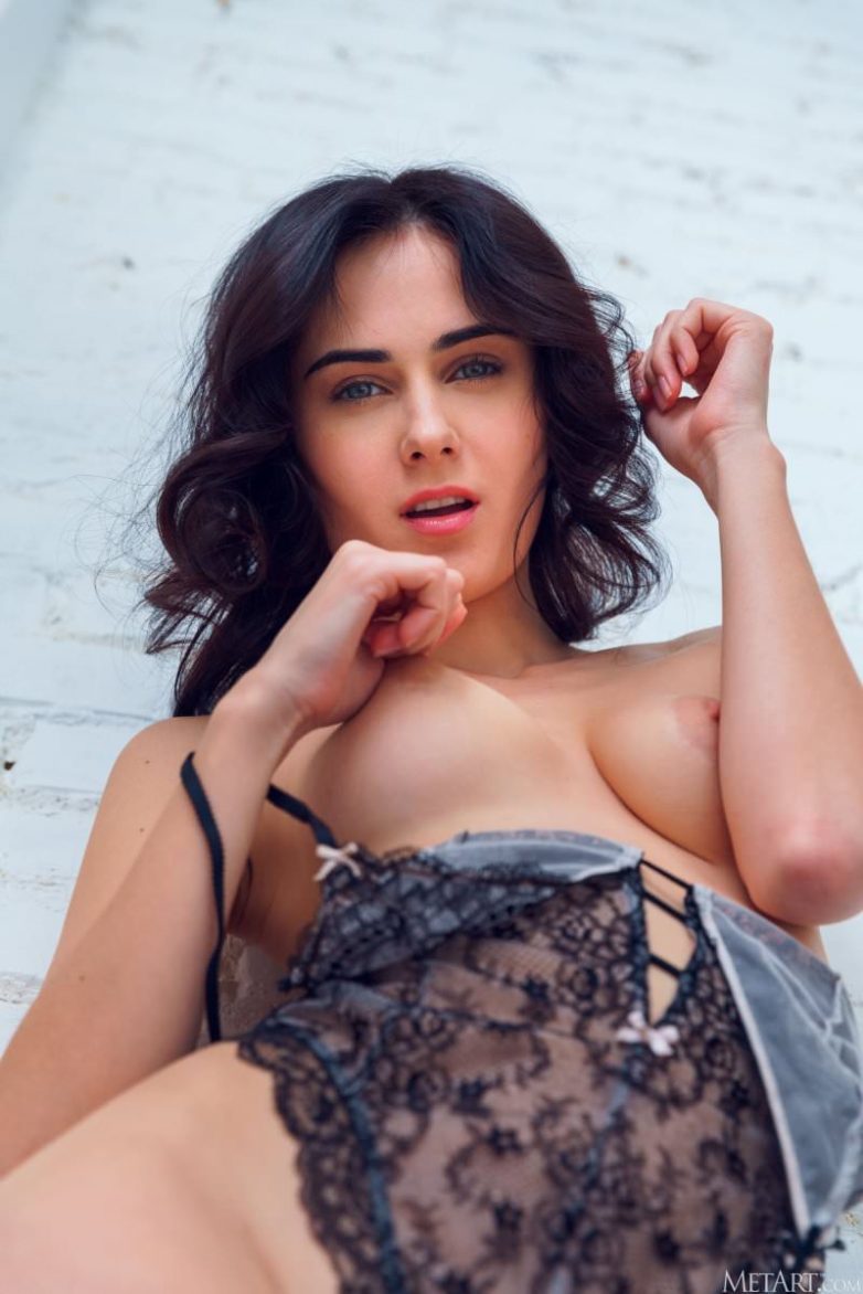 Кружевное прозрачное боди ей очень к лицу!
