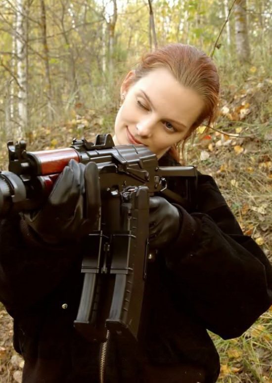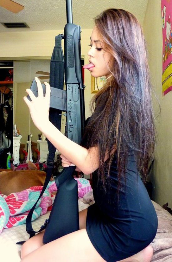 Девушка и автомат — страшная сила! Секси!