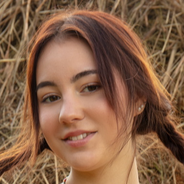 Aura позирует у стога сена
