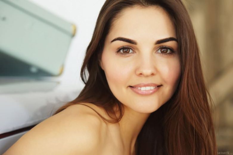 Шатенка позирует у ретроавтомобиля, превращённого в клумбу