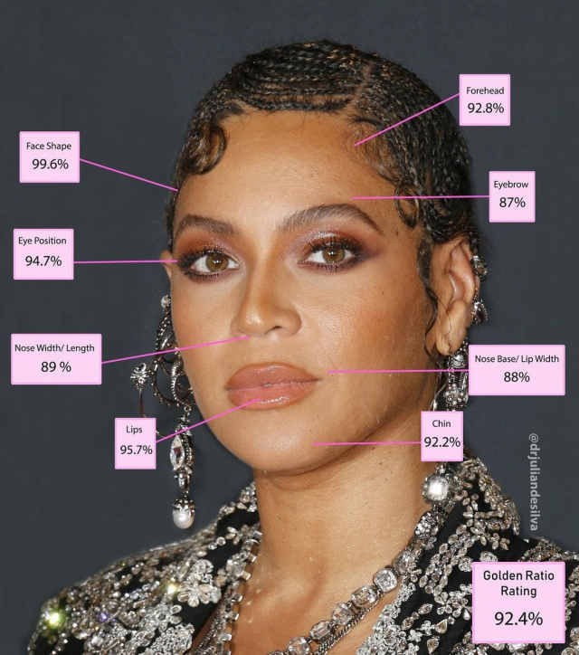 Знаменитый британский лицевой пластический хирург Джулиан Де Сильва опубликовал свой ежегодный ТОП-10 самых красивых женщин, согласно золотому сечению. То есть он использует сугубо научный подход, используя 8 основных параметров: форма лица, лоб, расположение глаз, брови, ширина/длина носа, основание носа/ширина губ, губы в целом и подбородок.