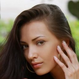 Брюнетка с эффектной внешностью о чём-то красиво замечталась на природе. Пусть все её мечты (даже самые грязные из них!) обязательно сбудутся!