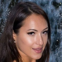 Прекрасная брюнетка позирует под шум водопада