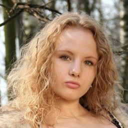 Миловидная девчуля забрела в берёзовый лес и обнажилась перед камерой.