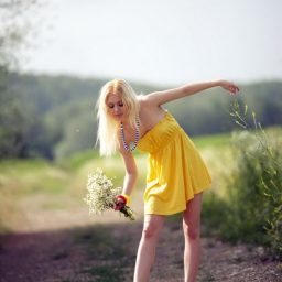 На улице такая теплая погода, что девчонке не хочется просто сидеть дома. Одевается и отправляется гулять. Идет на природу, чтоб подышать свежим воздухом, и чтоб можно было насобирать полевых цветов.