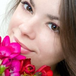 Шатенка очень обрадовалась цветочкам